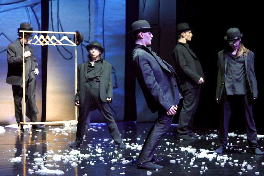 Az előadásunk puzzle-szerűen áll össze, a különleges mozdulatvilág, a finom érzületek, a szimbolikus események mögött mégis felsejlik egy vezérfonal.. Mintha megállna az idő, - nem az a kérdés, hogy milyen cselekvés történik, hanem hogy mi azt hogyan éljük meg. A középpontban a jelen pillanatban feloldódó hangulat áll és az azt körülölelő csend. Se nem jön, se nem halad, egyszerűen csak van.
