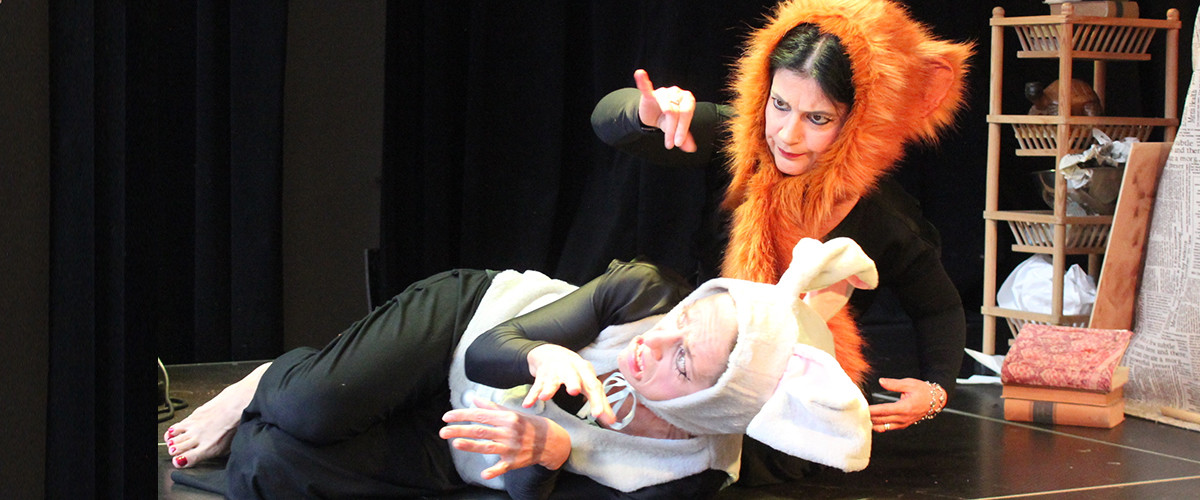 Előadásunkban néhány jellegzetes mesét válogattunk ki, és fűztünk egybe. A mesék egy limlomos padláson, ottfelejtett régi könyvek, kacatok, dobozok között játszódnak. Kiderül, hogy a kegyetlen és hatalmaskodó oroszlánt végül legyőzi-e a furfangos kis nyúl, hogy mi lesz a kék festékbe esett sakál sorsa, hogy érdemes-e kéretlenül tanácsokat osztogatni, vagy mi lesz, ha nem fogadjuk meg a jó tanácsot. Majom, madár, teknős és gazella – életre kelnek és történeteikben magunkra ismerhetünk.