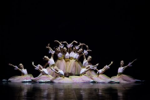 A Magyar Nemzeti Balettintézet növendékeinek Virágkeringőjével a klasszikus vonulat felől indul az este, majd a modern repertoár széles spektrumát bemutatva Hans van Manen Trois Gnossiennes-je után a Csajkovszkij zenékre készült, a modernen belül már klasszikussá vált és a klasszikus balettstílus elemeit feldolgozó Balanchine koreográfia, a Téma és variációk következik.